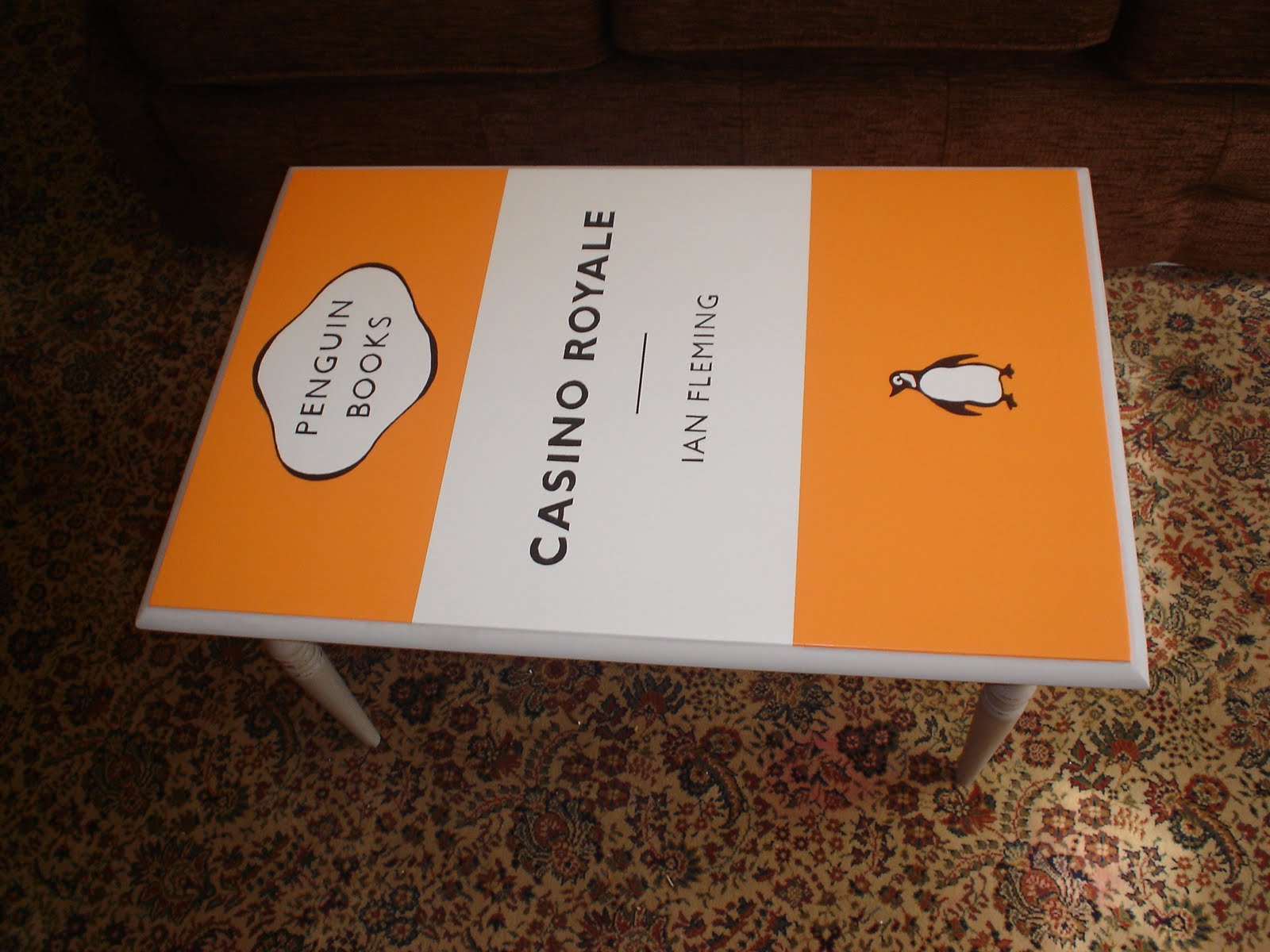 Inspired by the classic penguin paperback cover, I thought this design would make a unique table top. I had this modern standard coffee table from a while back, I'd painted the legs but left the top, there was no interest in it like that so how about a make over?